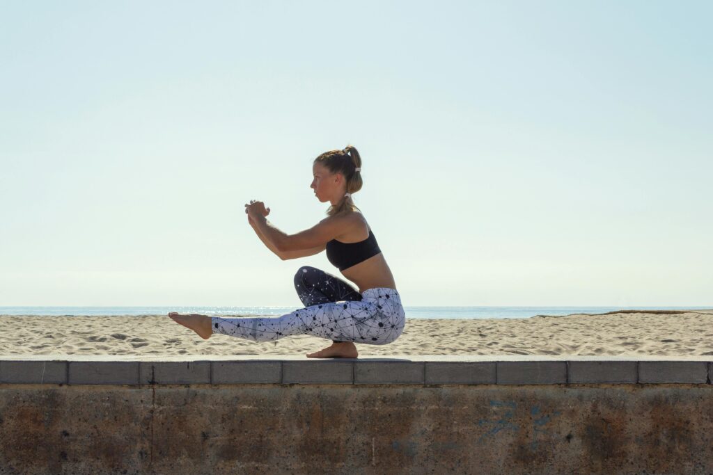 • Eccentric Goblet Squat: Targets the legs and core while improving balance. Hold a dumbbell at chest height and squat slowly, emphasizing the lowering (eccentric) phase.