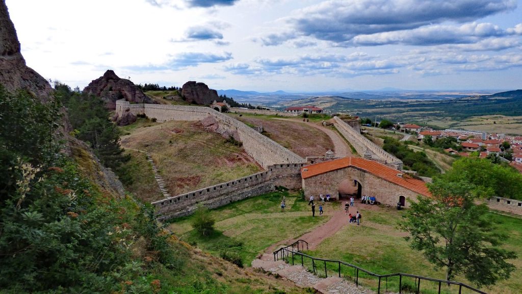 Ancient fortifications built into the rock formations and sweeping views over northwestern Bulgaria.